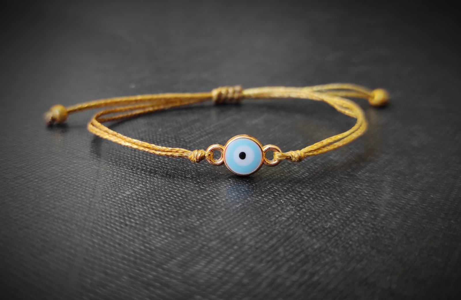 Μακραμέ βραχιόλι με χρυσό νήμα και γαλάζιο μάτι. Ιδιαίτερο και σικάτο βραχιόλι για όλες σας τις εμφανίσεις
