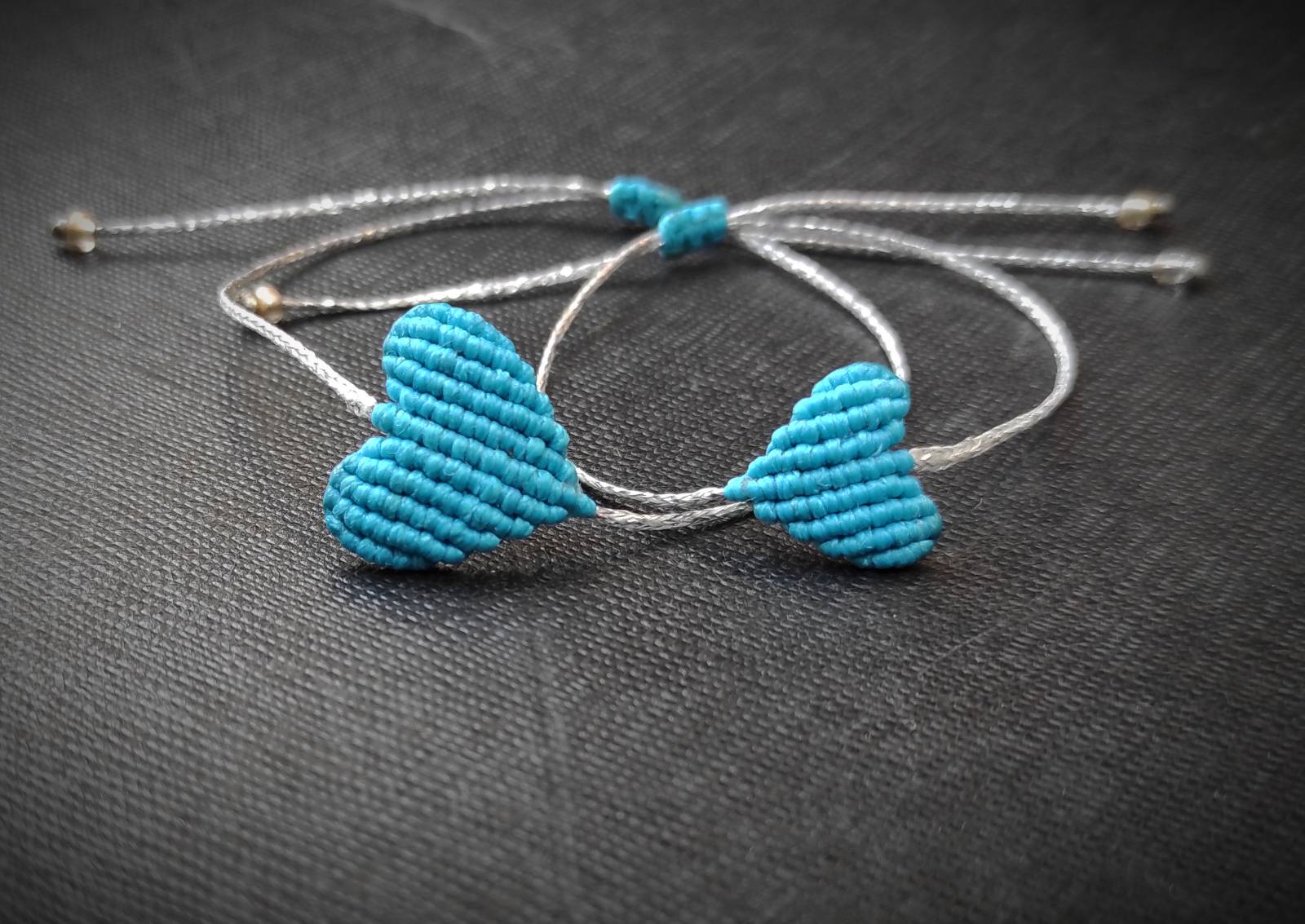 Σετ με μακραμέ καρδιές σε γαλάζιο χρώμα, μία ενηλίκων και μία σε πιο μικρό μέγεθος με ασημί λουράκι! Η καλύτερη έκπληξη που θα λατρέψετε και οι δύο! <3